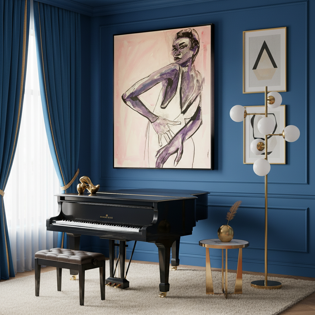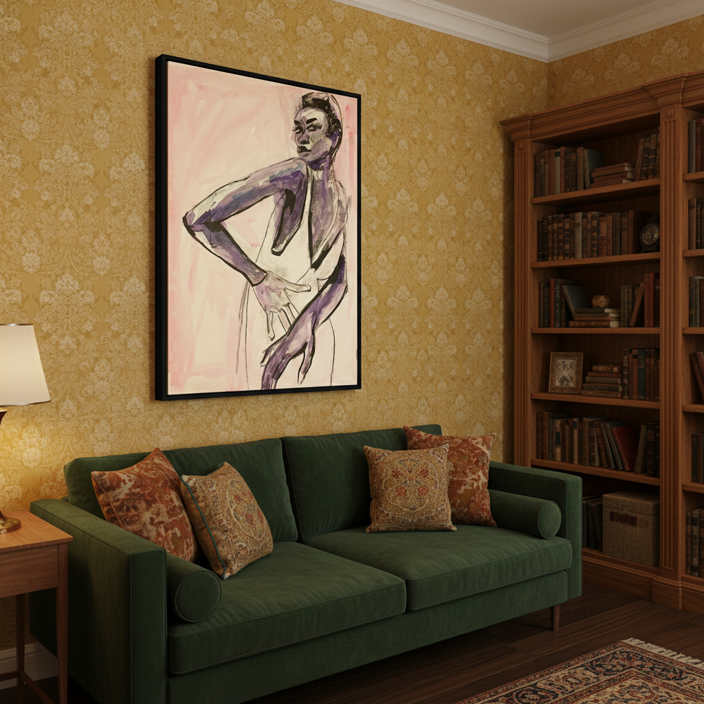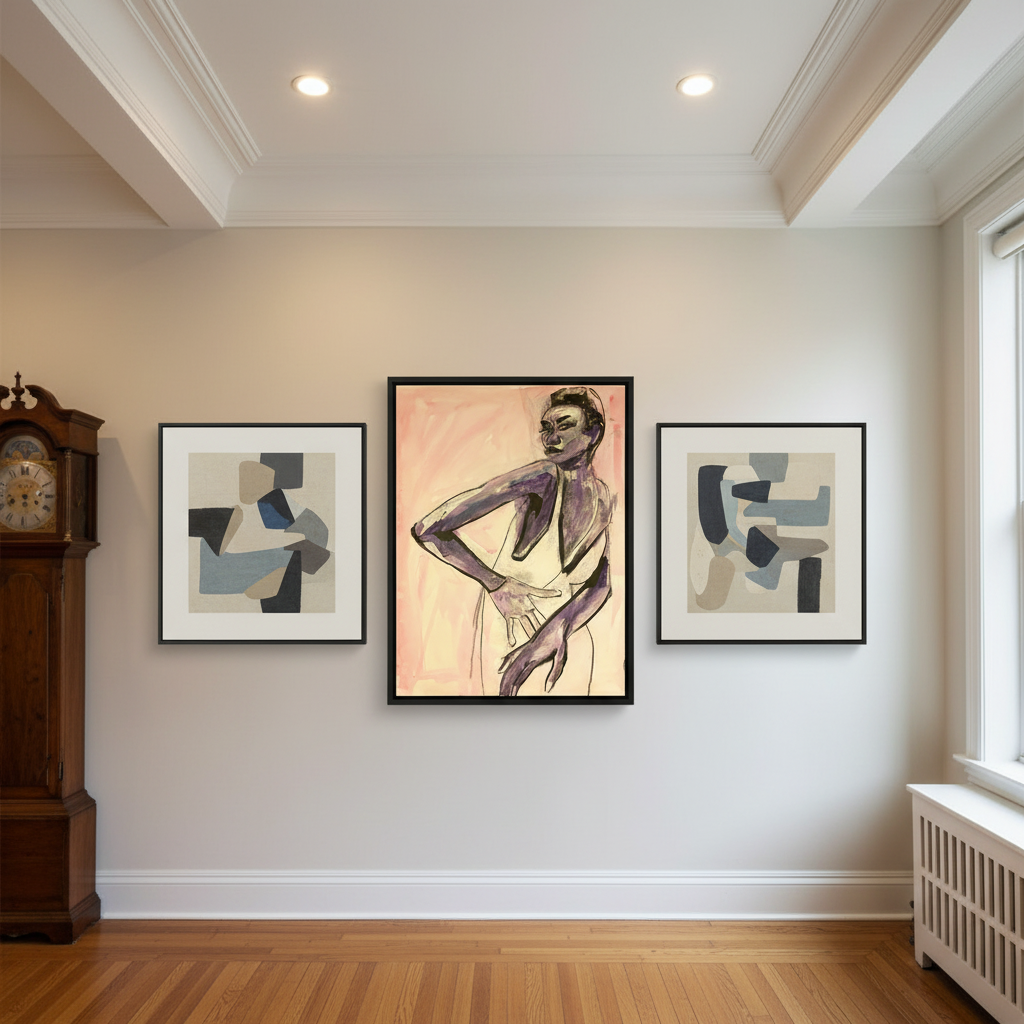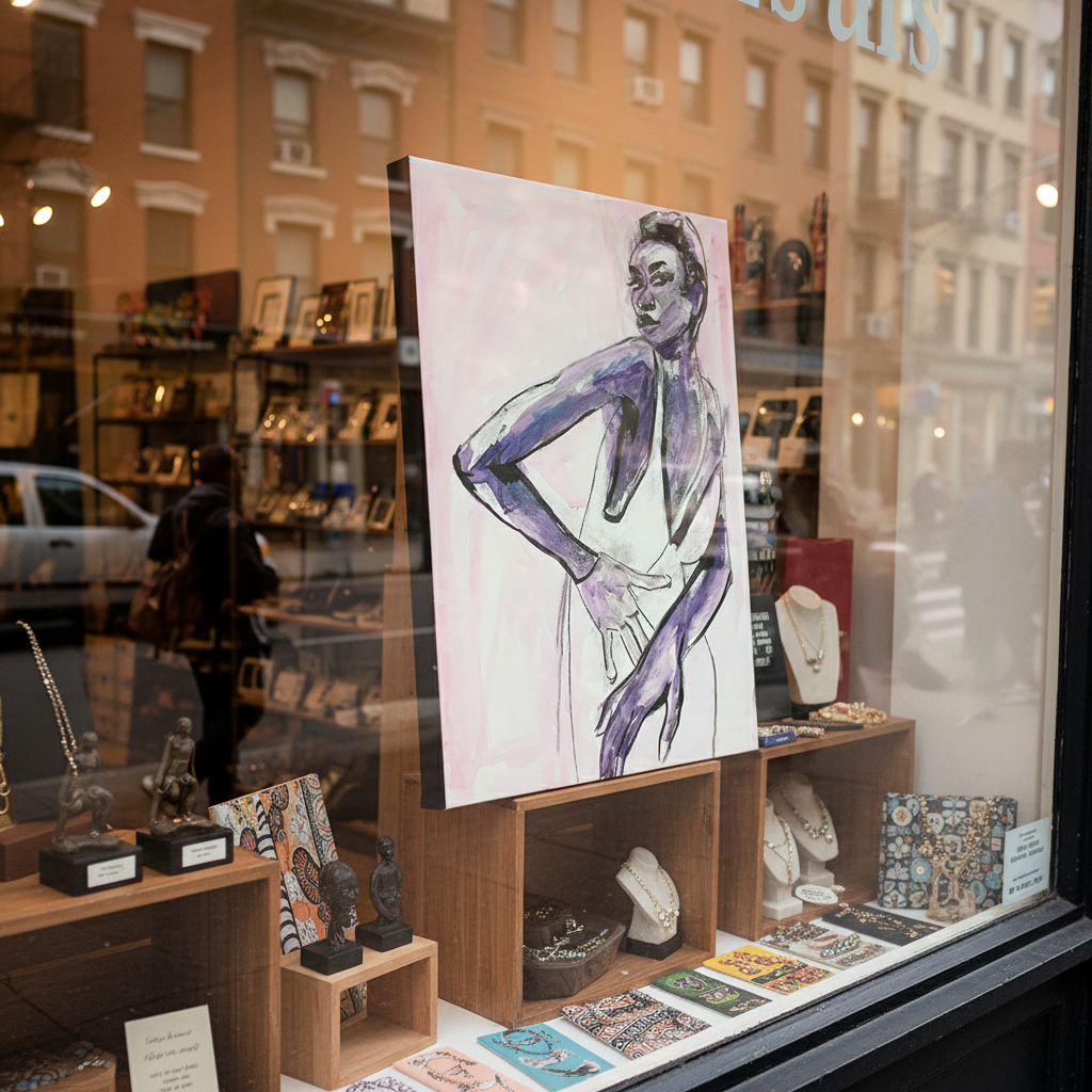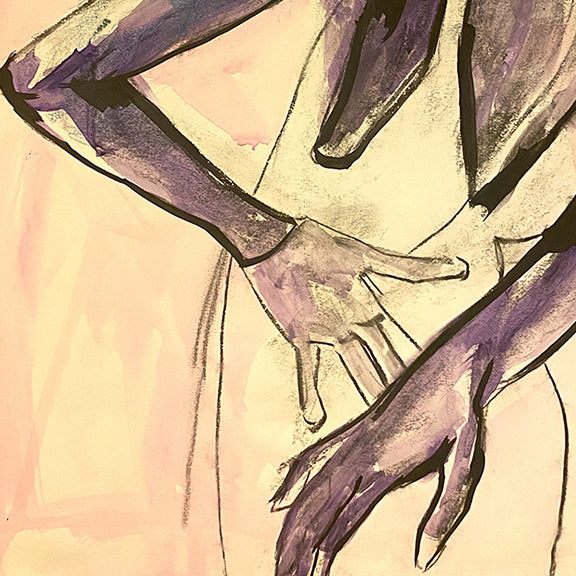 She is unapologetic and if you don't like it, well, you know what you can do! This charcoal and watercolor painting exudes attitude and character from the facial expression to the exaggerated hands.