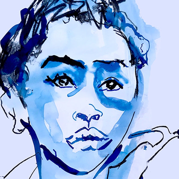 The charcoal, ink and gouache were applied with such speed, I had no time to think of her innocence in the balance of being preserved or being lost. It was only when the timer went off that I saw the small prayer in her gaze.