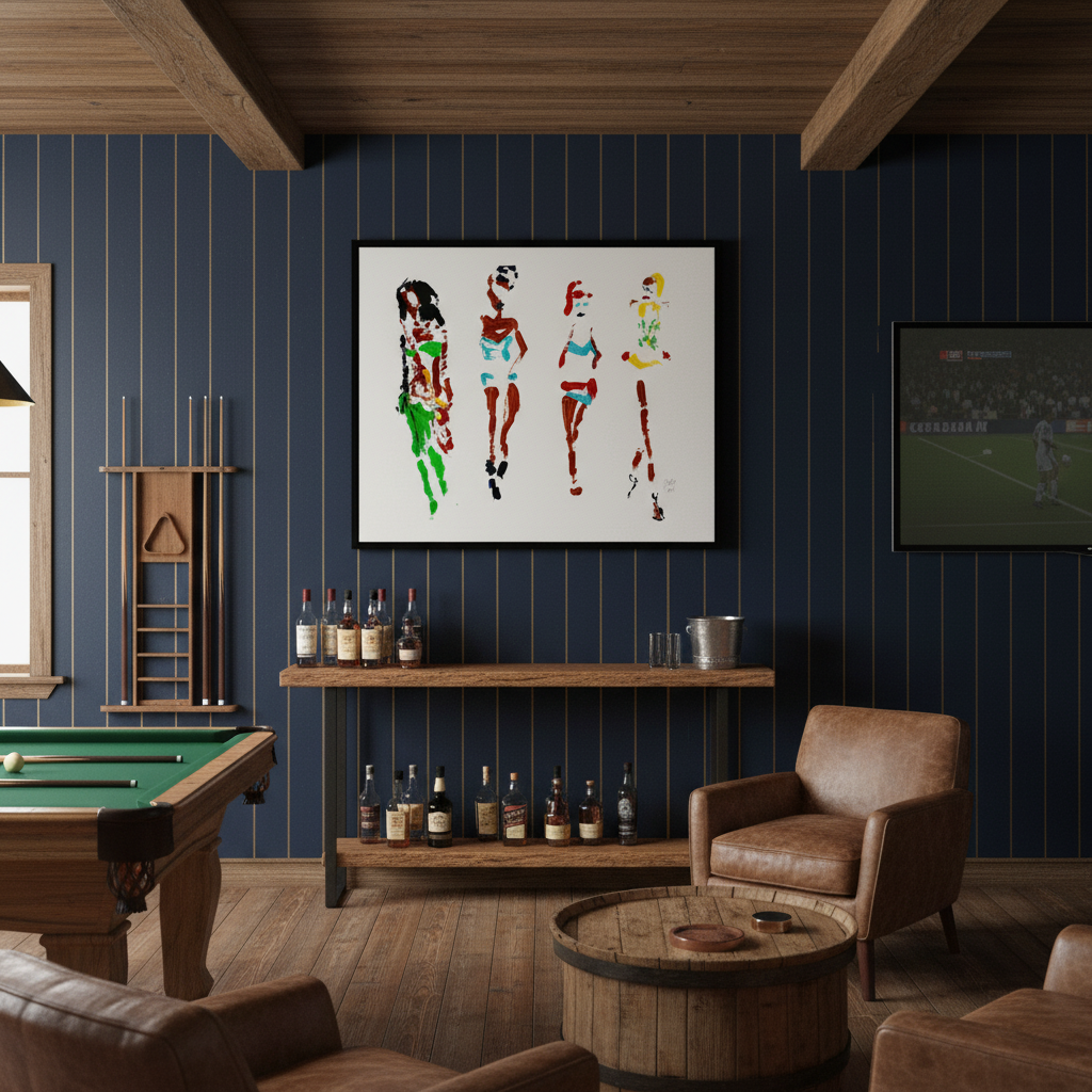The catwalk is still fierce in this abstracted view of four brown-skinned models on the scene.